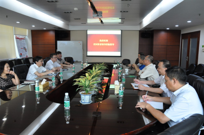 省國(guó)資委監(jiān)事會(huì)主席楊少軍聽(tīng)取集團(tuán)黨委副書記、總經(jīng)理王立新工作匯報(bào)