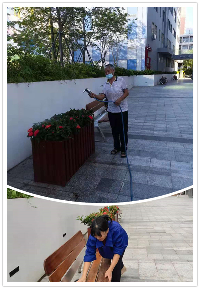炎炎夏日,為給居民提供安全舒適的居住環(huán)境,東華物業(yè)的保潔、綠化員們仔細地在小區(qū)里撿拾垃圾、清掃地面、擦拭公共設(shè)施、清潔垃圾桶,他們用勤勞的雙手為居民營造干凈整潔的生活環(huán)境。即使高溫天氣,也絕不懈怠。