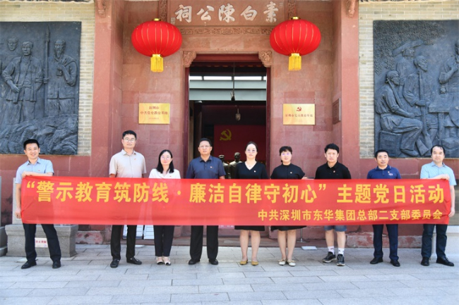 為深入貫徹落實全面從嚴(yán)治黨要求,進(jìn)一步弘揚廉潔文化,培育清風(fēng)正氣,推動主題教育走深走實。7月25日,深圳東華總部二支部、紀(jì)委支部黨員及入黨積極分子聯(lián)合到中共寶安縣第一次黨員代表大會會址紀(jì)念館、寶安區(qū)文天祥廉政教育館開展“警示教育筑防線·廉潔自律守初心”廉政教育主題黨日活動。公司黨委委員、副總經(jīng)理張化勤以普通黨員身份參加活動。
