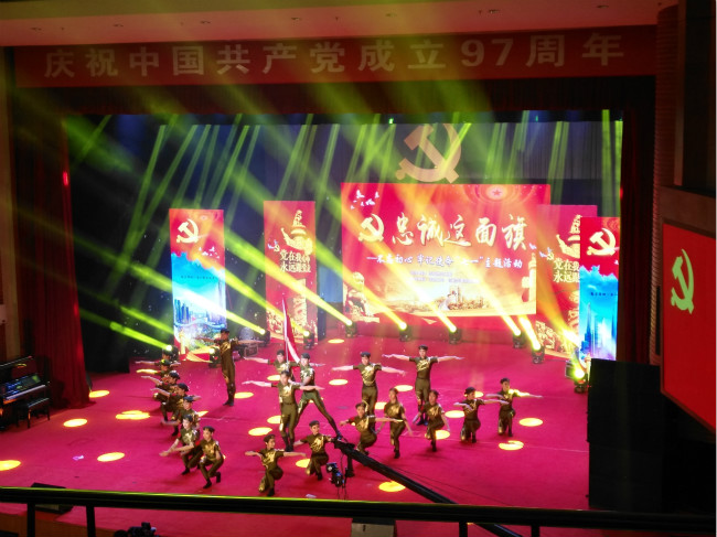 隨后進(jìn)行了基層黨組織黨建文化展示,此次黨建文化展示主要圍繞尋夢-光輝歷程、筑夢-一方熱土、圓夢-勇當(dāng)尖兵等三個方陣,通過配樂朗誦、情景舞蹈、京劇、小品等形式集中展現(xiàn)了中國共產(chǎn)黨建黨97周年光輝歷程和深圳改革開放40周年所取得的輝煌成就,充分見證了深圳的發(fā)展史,就是中國共產(chǎn)黨領(lǐng)導(dǎo)人民進(jìn)行中國特色社會主義建設(shè)的生動篇章;深圳的歷史成就,就是黨的領(lǐng)導(dǎo)對中國發(fā)展的重要意義的實(shí)踐明證。