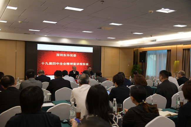 為深入學(xué)習(xí)宣傳貫徹黨的十九屆四中全會精神,推動興起學(xué)習(xí)宣傳貫徹黨的十九屆四中全會精神的熱潮。11月28日上午,深圳東華集團(tuán)舉行十九屆四中全會精神宣講大會。省屬企業(yè)黨的十九屆四中全會精神宣講團(tuán)成員、深圳東華集團(tuán)黨委書記、董事長王立新同志作宣講報告,集團(tuán)黨委副書記、總經(jīng)理姜國同志主持報告會。