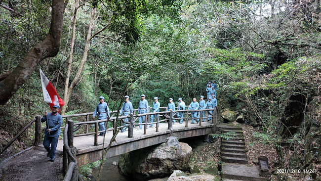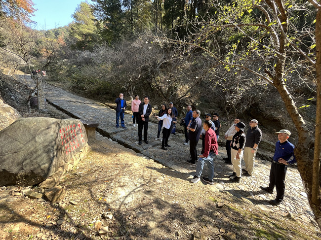 沿著崎嶇的道路,黨員干部們隨后來到了梅關古道。這里被稱為“嶺南第一關”,是一條用碎石砌成的千年古道。當年,開國元勛陳毅帶領部隊轉(zhuǎn)戰(zhàn)梅嶺一帶,進行了艱苦卓絕的三年游擊戰(zhàn)爭,留下了光輝的足跡,在臨危之際寫下了壯志凌云的《梅嶺三章》革命詩。黨員干部們認真聆聽了帶隊老師的講解,深刻感受到革命先輩為中華民族崛起所做的不懈努力和豐功偉績。