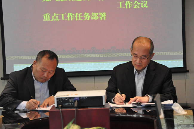 集團(tuán)8個(gè)部門、6個(gè)子公司負(fù)責(zé)人分別與黨委書記、董事長(zhǎng)王維星,黨委副書記、總經(jīng)理王立新簽訂《2017年度黨風(fēng)廉政建設(shè)工作責(zé)任書》和《2017年度重點(diǎn)工作任務(wù)責(zé)任書》。
