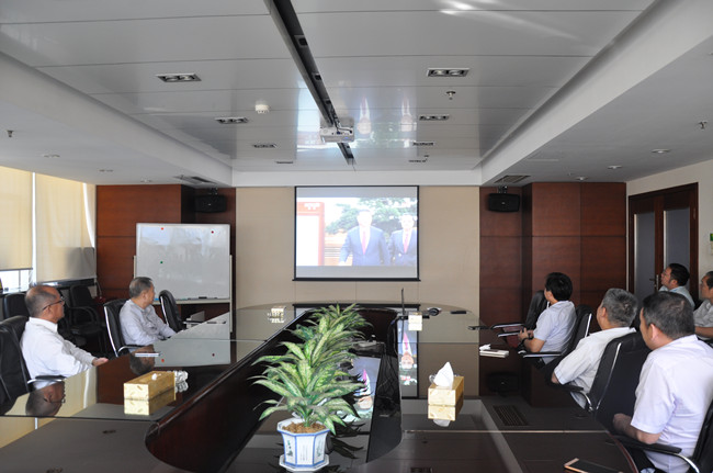 黨委副書記、總經(jīng)理王立新同志、副總經(jīng)理王東民同志在集團本部與黨員干部一同觀看直播實況