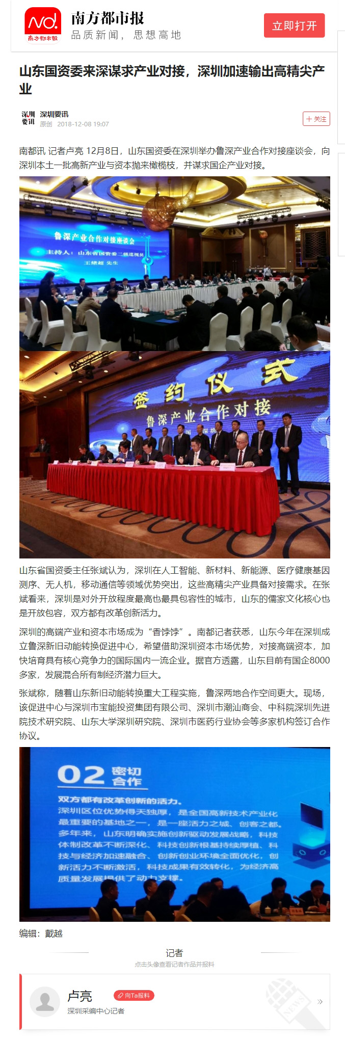 南方都市報(bào):山東國(guó)資委來(lái)深謀求產(chǎn)業(yè)對(duì)接,深圳加速輸出高精尖產(chǎn)業(yè)