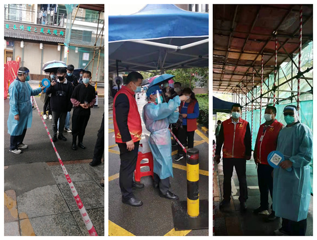 解封不解防。經(jīng)過前段時(shí)間的持續(xù)奮戰(zhàn),東華園區(qū)恢復(fù)了正常運(yùn)行,企業(yè)陸續(xù)復(fù)工復(fù)產(chǎn),居民群眾又開始了忙碌的日常,給園區(qū)疫情防控工作帶來了巨大壓力。作為“保障居民生活和城市基本運(yùn)行”的物業(yè)行業(yè),東華物業(yè)公司將抗疫工作放在首位,嚴(yán)格按照屬地政府疫情防控要求,加強(qiáng)進(jìn)出口管控和人員排查、協(xié)助核酸檢測(cè),全力以赴守好社區(qū)第一道防線。在深圳東華黨委統(tǒng)一領(lǐng)導(dǎo)和廣大黨員干部示范引領(lǐng)下,東華物業(yè)公司黨員群眾迅速集結(jié),由黨員高秀德,入黨積極分子黃金雨、康國(guó)超,民盟盟員王英才子,基層員工胡方均、蘇迎清、鄧輝進(jìn)、曾俊文、張秀青組成的志愿者隊(duì)伍,以一往無前的姿態(tài)積極主動(dòng)地參與到“勇于擔(dān)當(dāng)、抗疫有我”的志愿服務(wù)行動(dòng)當(dāng)中。