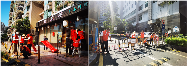 因園區(qū)企業(yè)和住戶眾多,為加快恢復(fù)生產(chǎn)生活秩序,避免工作日造成不便,物業(yè)管理公司于5月4日緊急集結(jié)全體志愿者,對(duì)東華園臨時(shí)圍蔽水馬、擋板、出入卡口、快遞安置點(diǎn)等設(shè)施進(jìn)行了拆除運(yùn)離。
