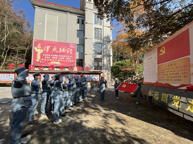 隨后,黨員干部們前往了位于粵北樂昌大山深處的龍王潭。這里是紅軍長征戰(zhàn)斗過的地方,中央紅軍充分發(fā)揚(yáng)不怕犧牲、艱苦奮斗的精神,連續(xù)突破了國民黨設(shè)置的三道封鎖線,順利通過了中央紅軍萬里征途的第一站。在燦爛的陽光和火紅的黨旗下,全體黨員神情堅定地重溫了入黨誓詞,進(jìn)一步牢記了入黨時的莊嚴(yán)承諾,堅定了理想信念。