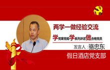 12月2日下午,集團(tuán)在東華假日酒店春華廳召開了“兩學(xué)一做”學(xué)習(xí)教育經(jīng)驗(yàn)交流大會(huì)。假日酒店黨支部駱忠東同志在交流發(fā)言中表示:“我在思想上受到了深刻的反思, 心靈受到無盡的洗滌, 所受的教育將會(huì)影響自己一生”。